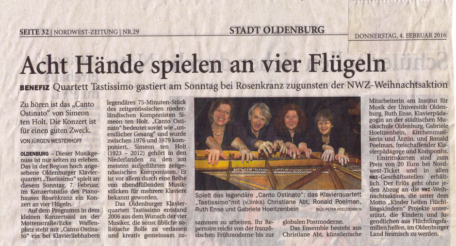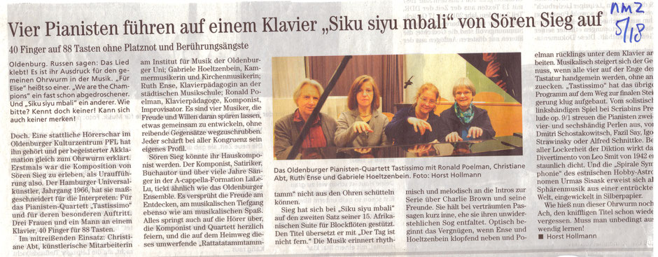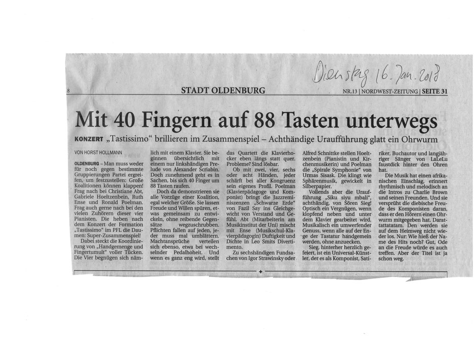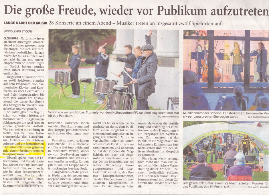 "Die fantastischen Tastissimo-Pianisten glänzten mit einem beeindruckenden Kurzprogramm" schrieb die NWZ.